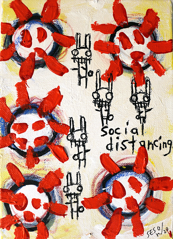"Social Distancing" acrylic/mix on canvasboard 5" x 7" *SOLD email sesow@sesow.com to reserve/ask about purchasing. please include url and description. |