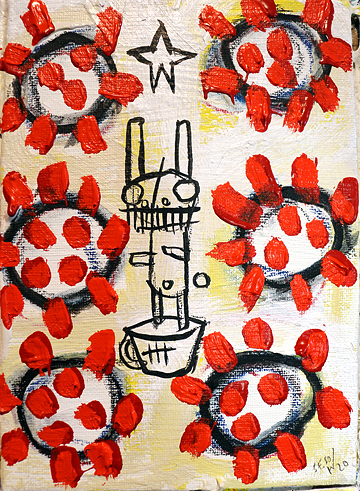 "The Flag" oil/acrylic on paper 12" x 18" $90 signed 'sesow 21' lower left corner (not pictured) email sesow@sesow.com to reserve/ask about purchasing. please include url and description. |