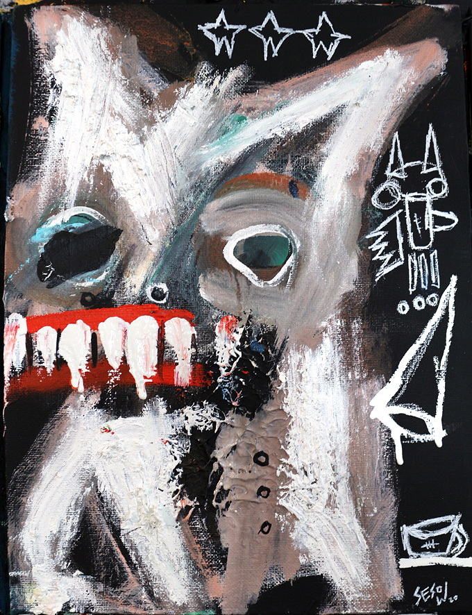 "Provocation" acrylic/oil on stretched canvas 16" x 20" *SOLD email sesow@sesow.com to reserve/ask about purchasing. please include url and description. |