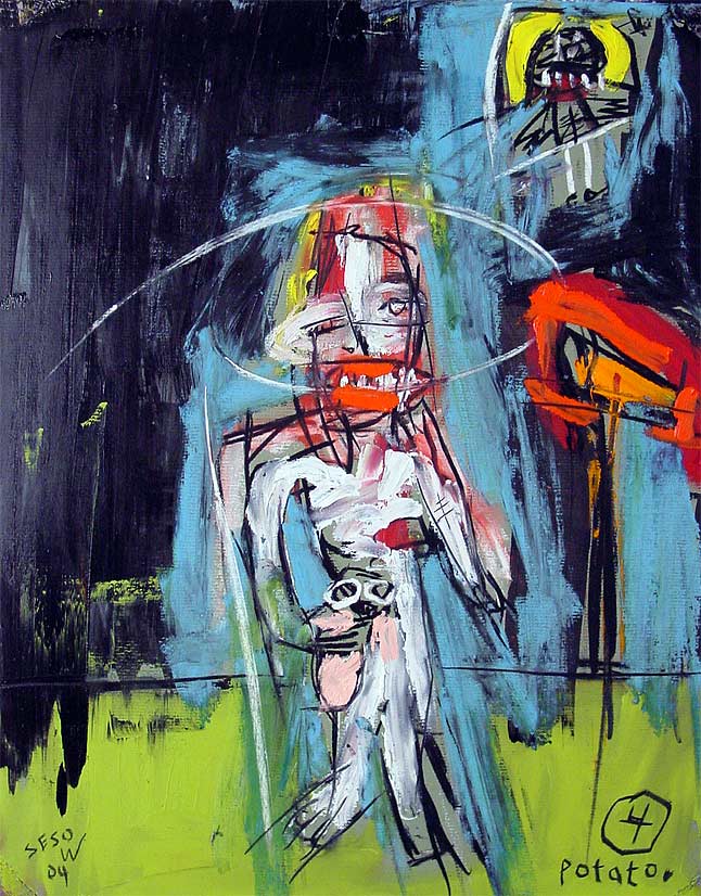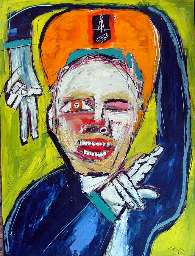 "Cleric" 30" x 40" oil/acrylic on chipboard "31 Days in July" 2004 project (July 19) *SOLD |