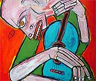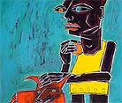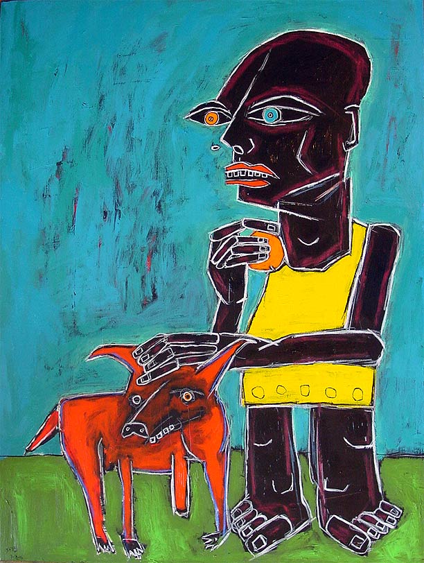 "Boy Holding Rock (with three-legged dog)" 30" x 40" acrylic on stretched canvas "31 Days in July Series" (July 13, 2006) *SOLD |