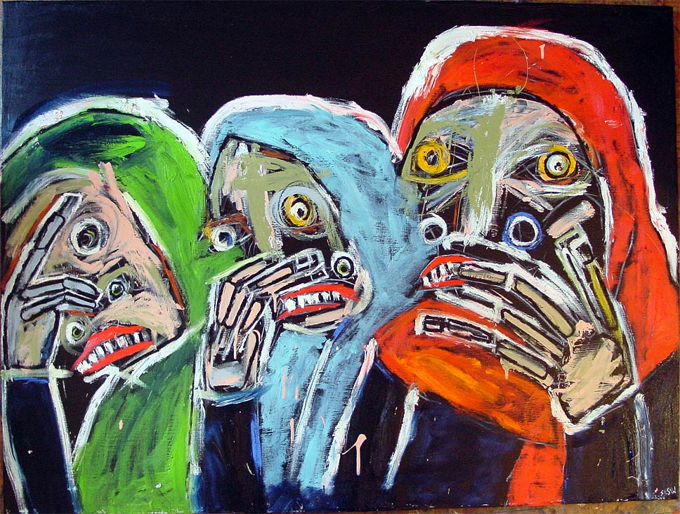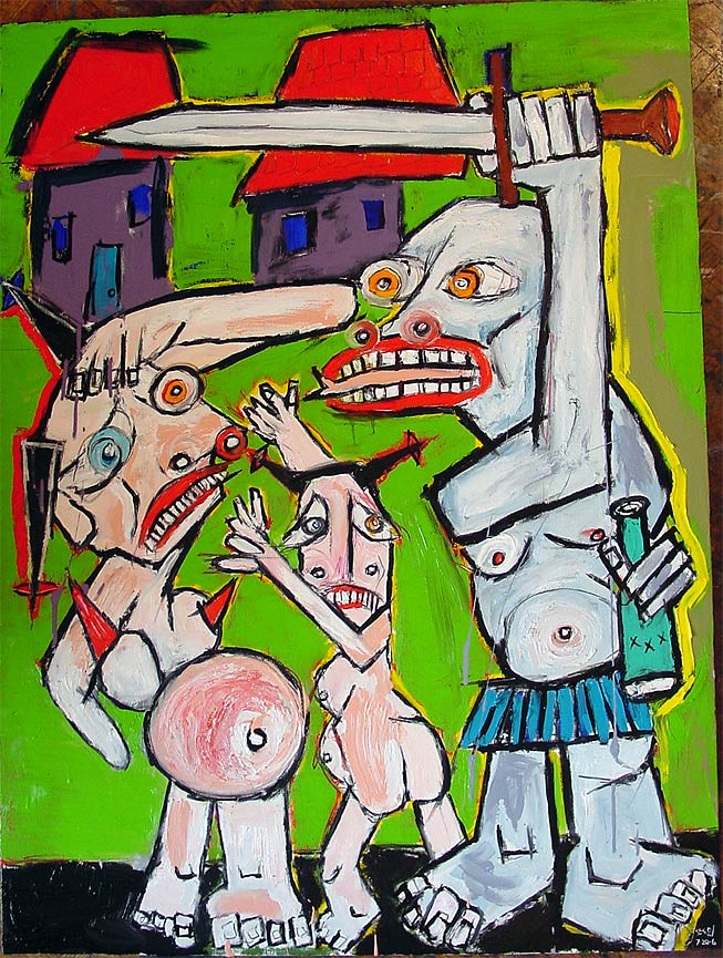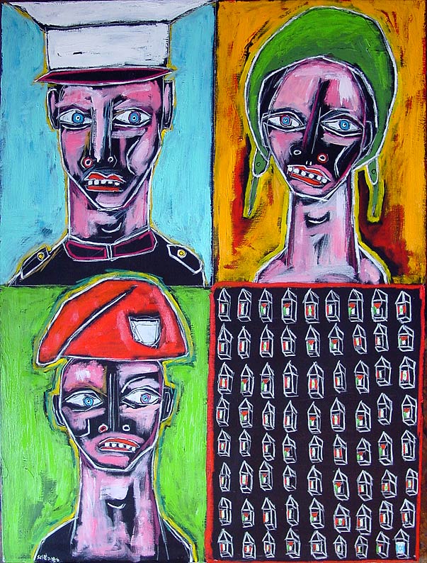 "Soldiers and Civilians" 30" x 40" acrylic/oil on stretched canvas "31 Days in July Series" (July 18, 2006) *SOLD |