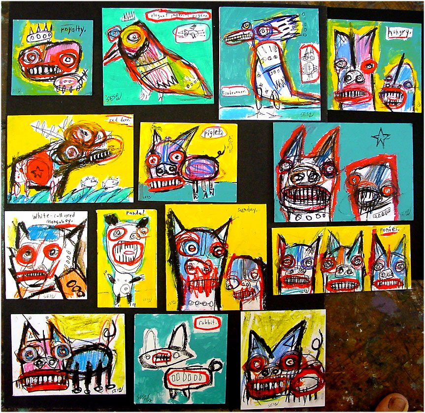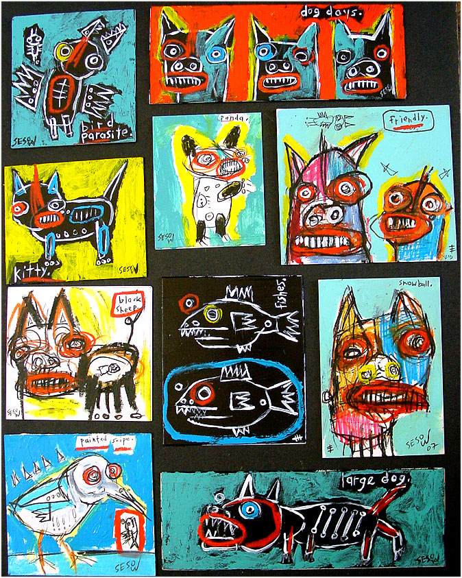 small paintings (august 2007) approx 4"x 6" acrylic/mixed on matboard *SOLD |