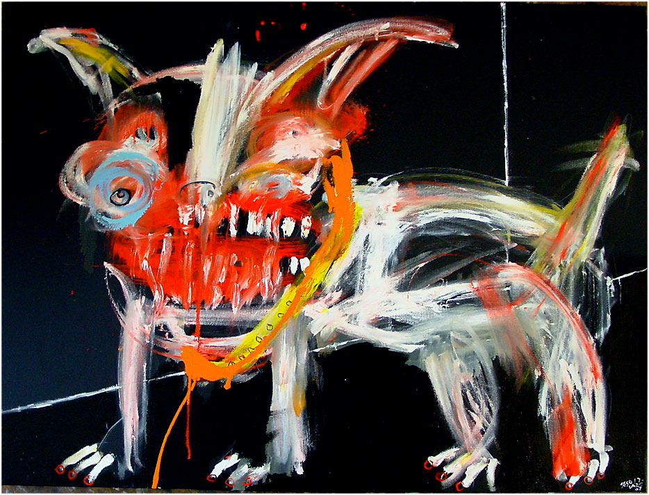 "Raw Dog" 30" x 40" oil on stretched canvas *SOLD "31 Days in July Series" (July 25, 2007) CLICK HERE to for wash. post cover image |