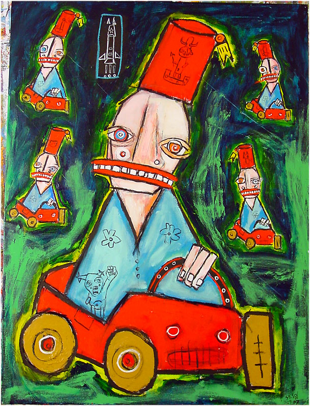 "Road Warriors" 30" x 40" acrylic/mixed on stretched canvas *SOLD "31 Days in July Series" (July 29, 2007) CLICK HERE to for wash. post cover image |