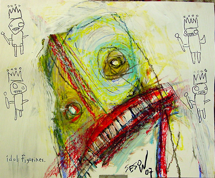 "idol figurines" 17" x 14" oil/mixed on archival paper *SOLD