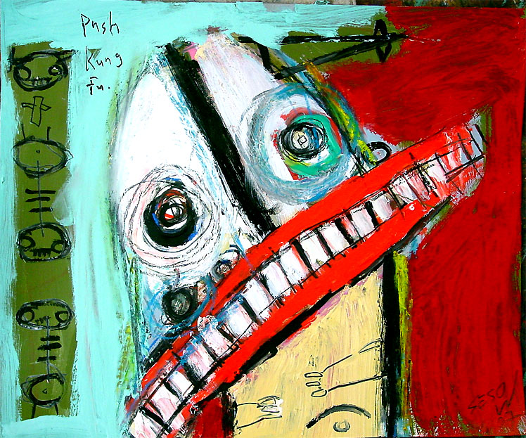 "push kung fu" 17" x 14" oil/mixed on archival paper *SOLD