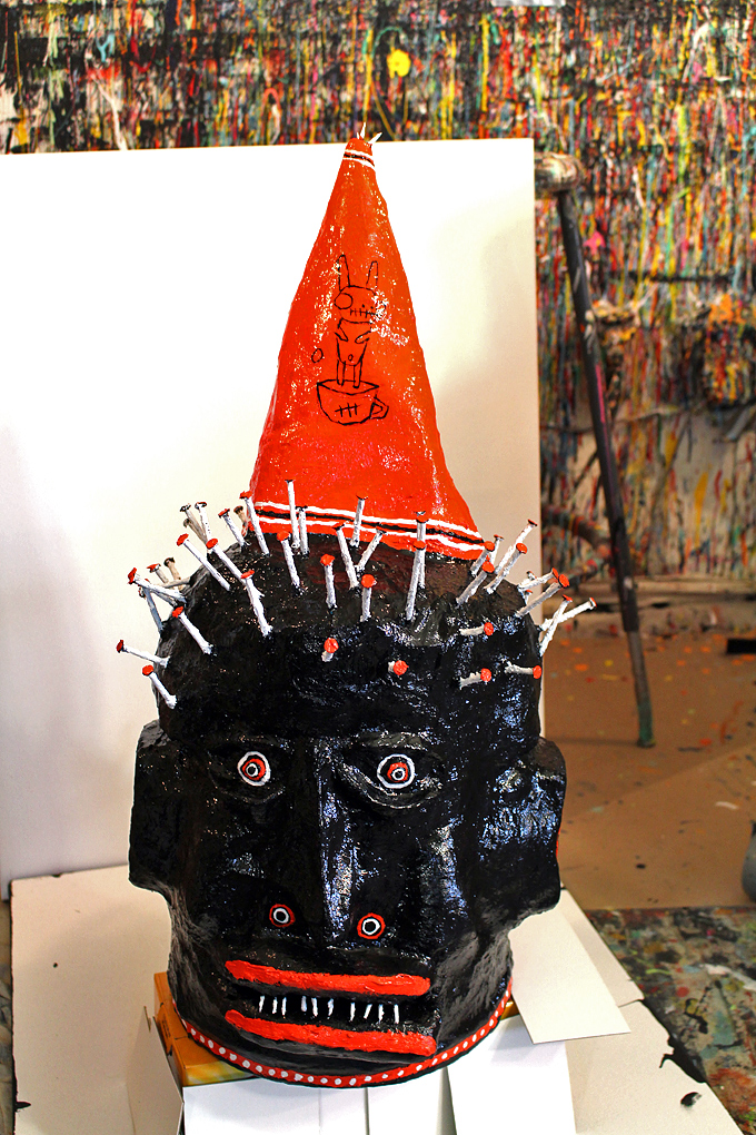 This is my ‘Studio Golem’. it “protects my back” and watches over my studio and me while I paint or have my back to the door or my painting studio.