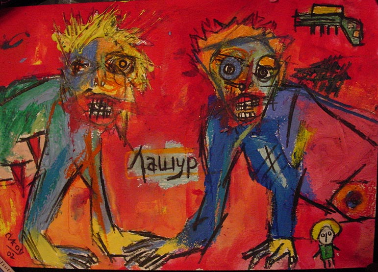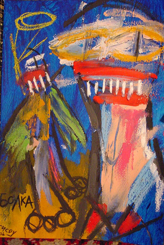 "Luikum Ui Bulgaria" acrylic, pastel, lumber crayon, mixed on mount board approx 7"x4" PAINTING RETIRED (click here for details) |