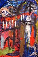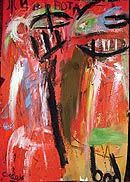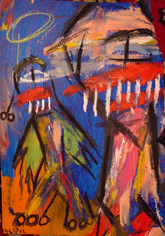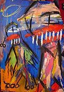 "Tormented" acrylic, pastel, lumber crayon, mixed on mount board approx 7"x4" PAINTING RETIRED (click here for details) |