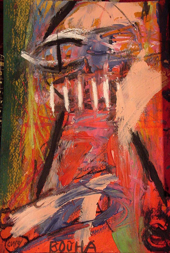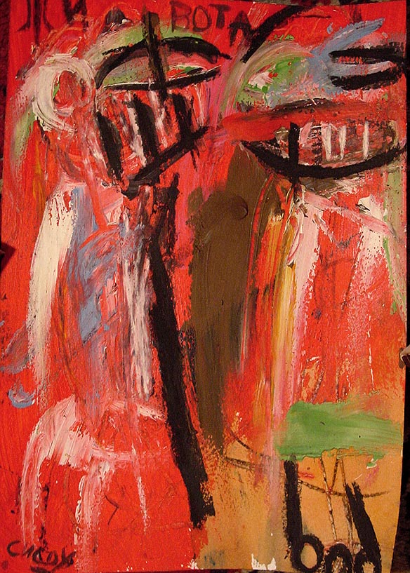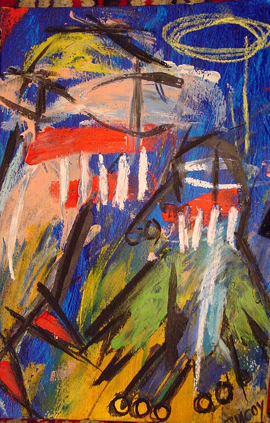 "Crazy" acrylic, pastel, lumber crayon, mixed on mount board approx 7"x4" *SOLD |