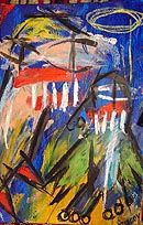 "Space Program" acrylic, pastel, lumber crayon, mixed on arches 7" x 10" PAINTING RETIRED (click here for details) |