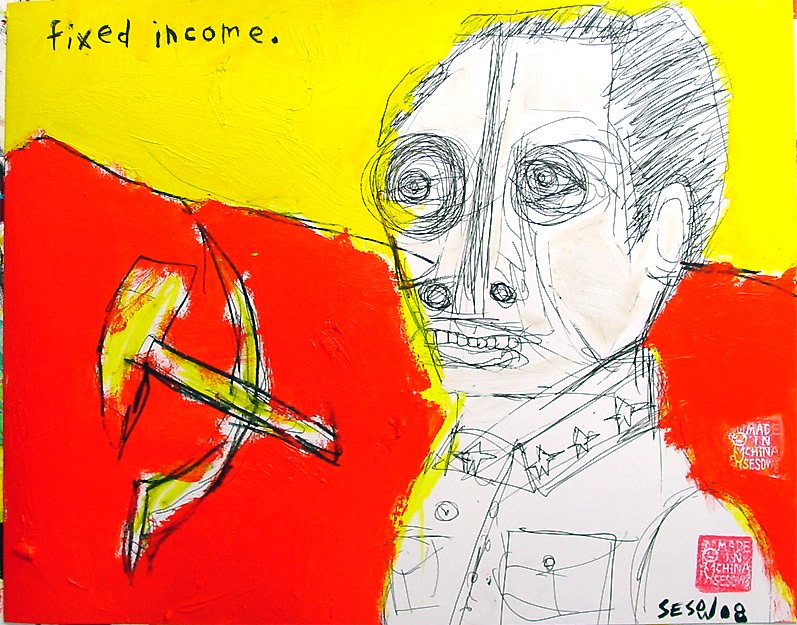 "Fixed Income" acrylic/mixed (media obtained while in China) on bristol paper 11" x 14" (created in China July 2008) hong kong *SOLD |