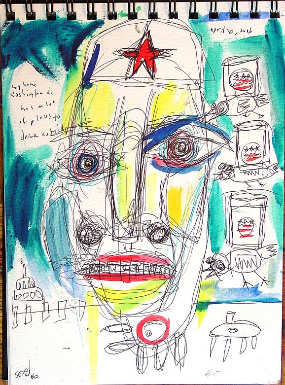 Springtime in DC journal 10" x 7" journal ink/mixed on watercolor paper in journal created in Washington, DC (Spring 2006) pigment obtained from souk in Essaouira, Morocco 2006