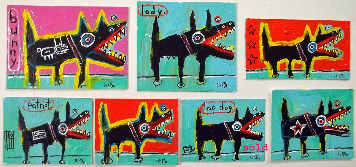dogs of war (#2) $40 (free usa shipping) acrylic/mix on matboard approx 4" x 6" email sesow@sesow.com to reserve/ask about purchasing. please include url and description. |