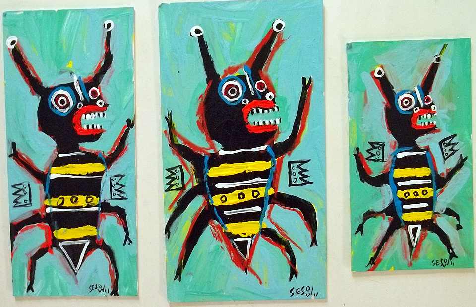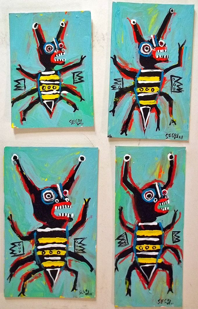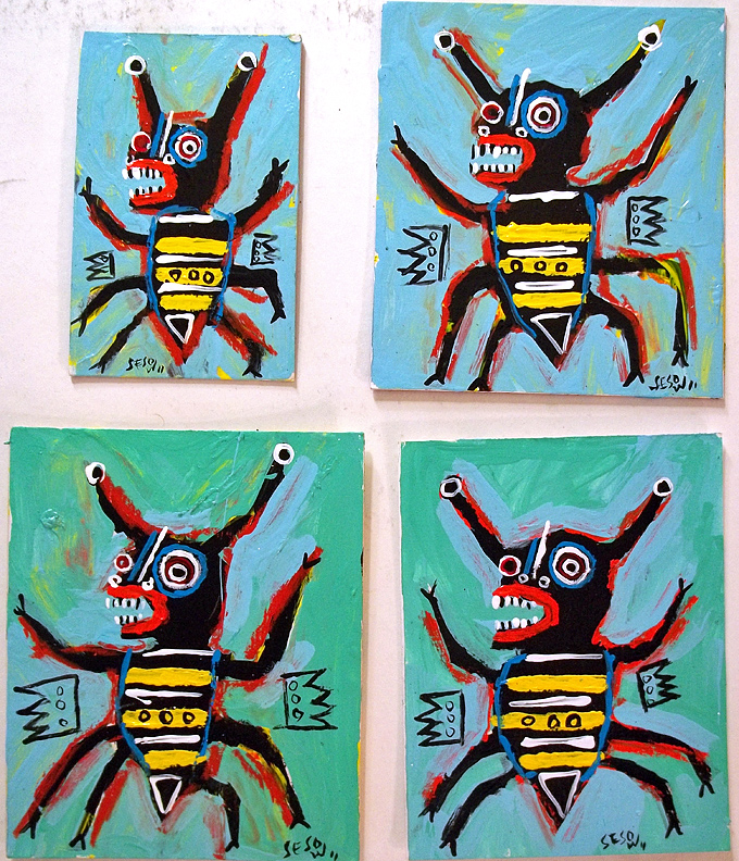 small drones/bees (#5) $40 (free usa shipping) acrylic/mix on matboard approx 4" x 6" email sesow@sesow.com to reserve/ask about purchasing. please include url and description. |