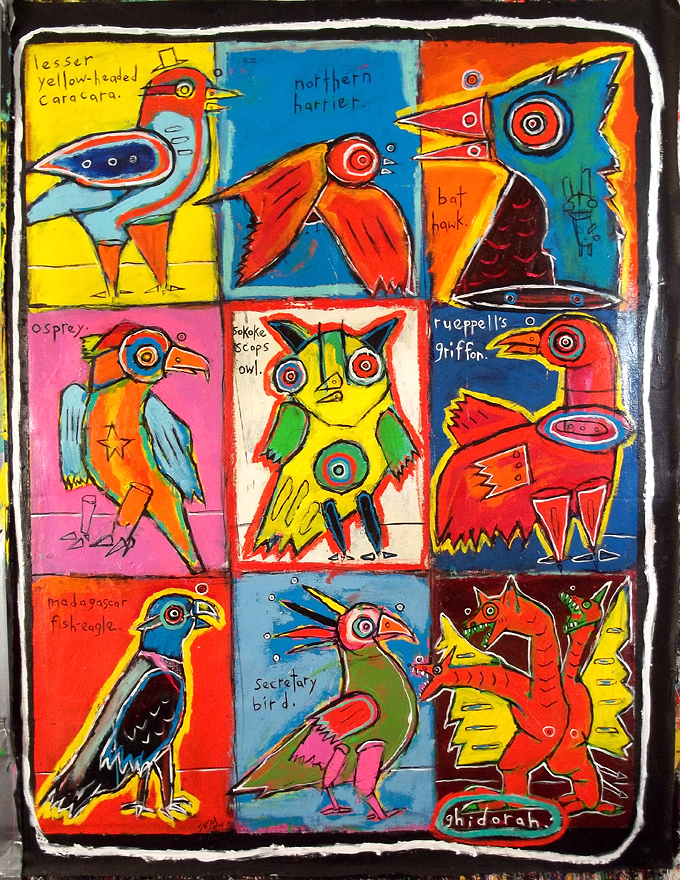 "Birds of Prey" *SOLD oil/mix on unstretched canvas approx 30" x 40" |
