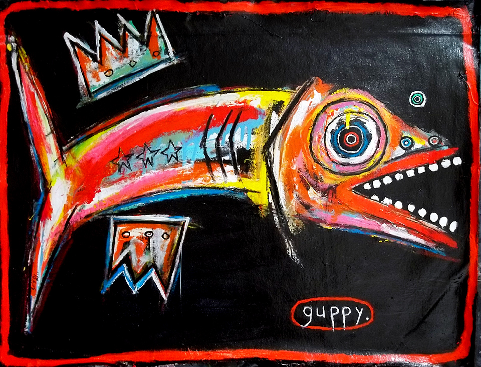 "Guppy" $280 oil/mix on unstretched canvas approx 30" x 40" |