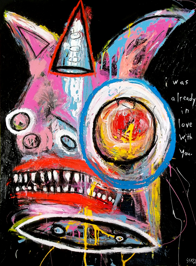 "Piggy" *SOLD oil/mix on chipboard 30" x 40" email sesow@sesow.com to reserve/ask about purchasing. please include url and description. |