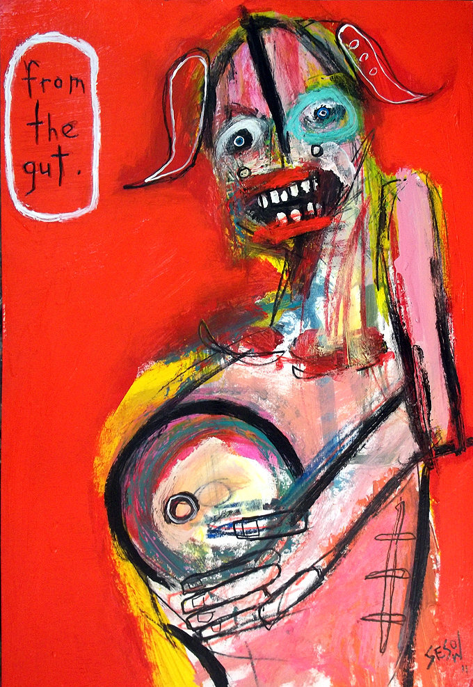 "From the Gut" acrylic/mix on archival paper 22" x 15" |