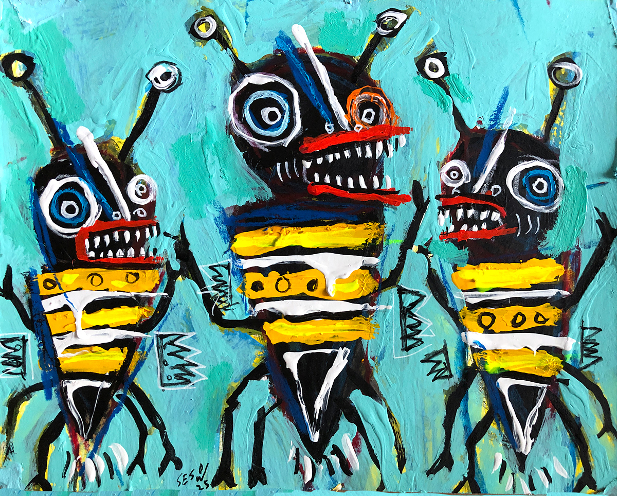 "Three Bees" acrylic/mix on archival paper 8" x 10" *SOLD email sesow@sesow.com to reserve/ask about purchasing. please include url and description. |