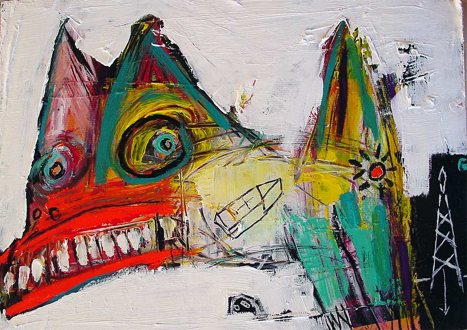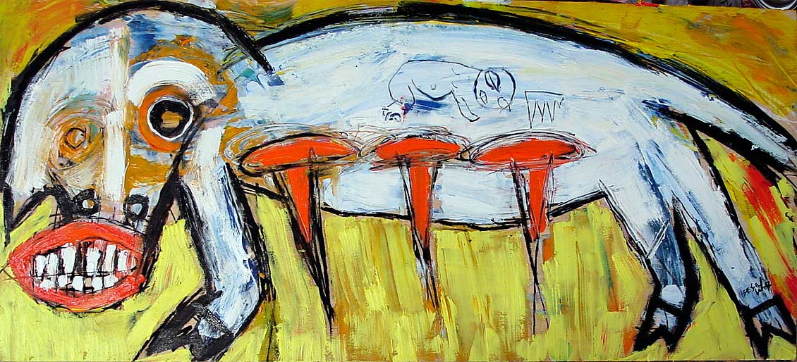 "Blame It on the Dog" 18" x 13" acrylic/mixed on matboard *SOLD