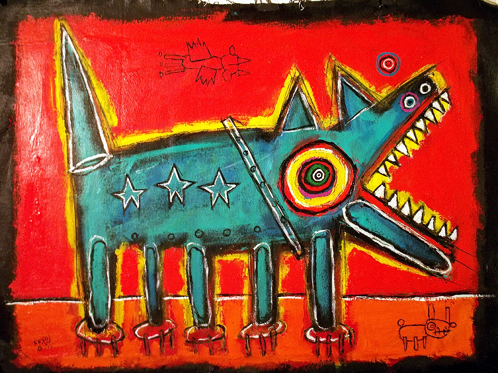 "Dog" this painting is currently represented by the Jeanine Taylor Folk Art Gallery acrylic on unstretched canvas approx. 18" x 24" made in Sanford, Florida |
