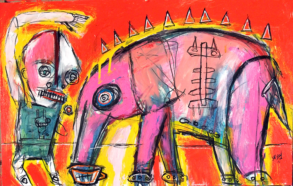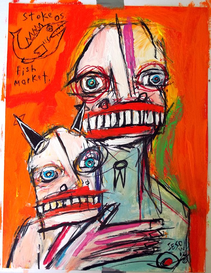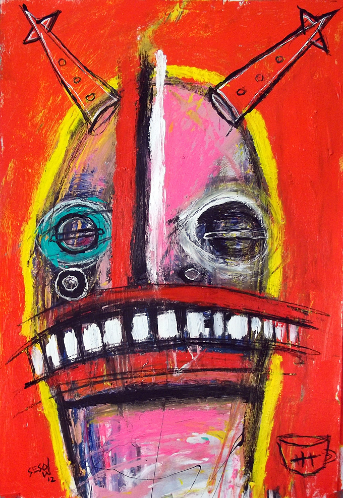 "Brute" $240 acrylic/mix on matboard approx 30" x 18" email sesow@sesow.com to reserve/ask about purchasing. please include url and description. |