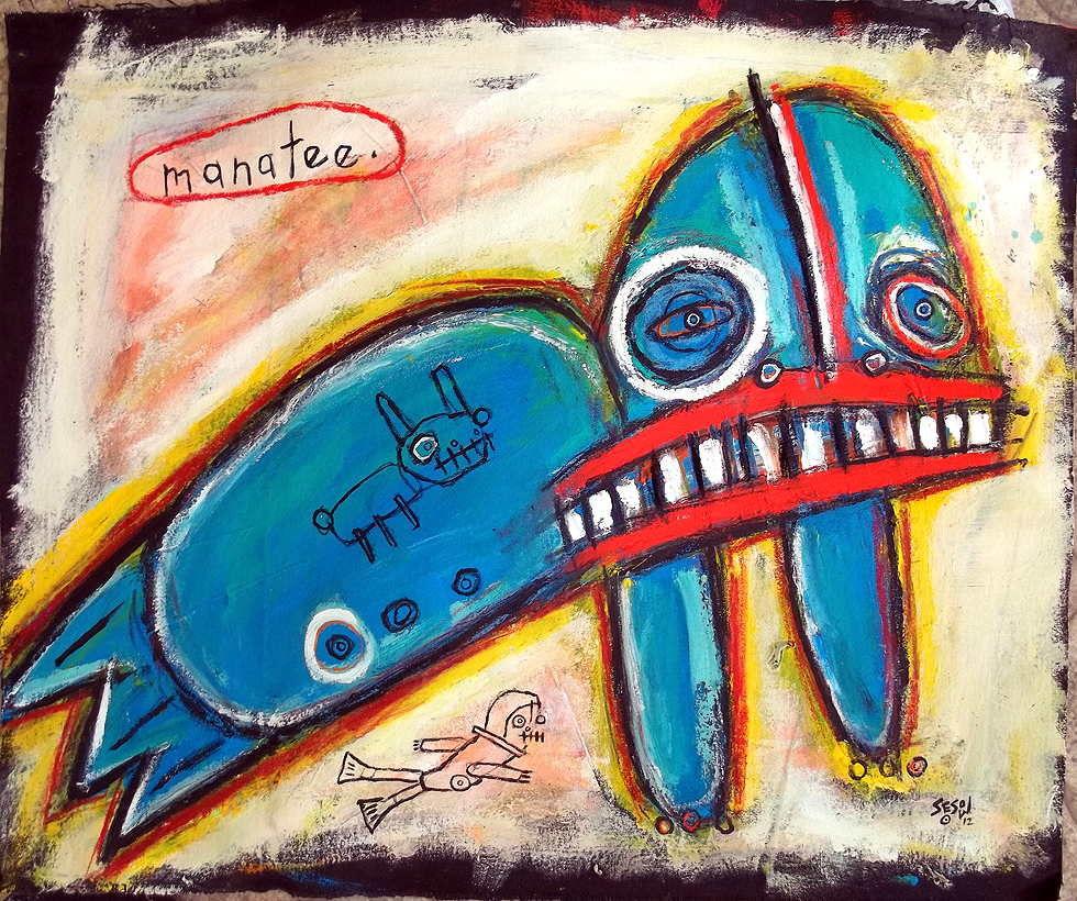 "Hello Manatee" *SOLD acrylic on paper 11"x14" made in Sanford, Florida |