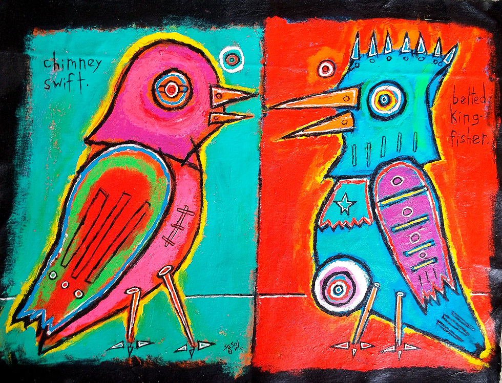 "Swift and kingfisher" *SOLD acrylic on unstretched canvas approx. 18" x 24" made in Sanford, Florida |