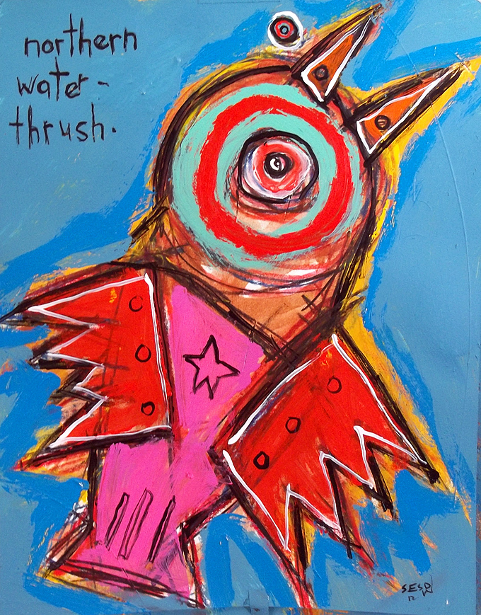 "Northern Water Thrush" this painting is currently represented by the Jeanine Taylor Folk Art Gallery acrylic/mix on archival paper 11" x 14" |