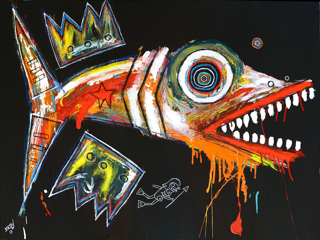 "Big Fish" acrylic/oil on stretched canvas 30" x 40" *SOLD email sesow@sesow.com to reserve/ask about purchasing. please include url and description. |