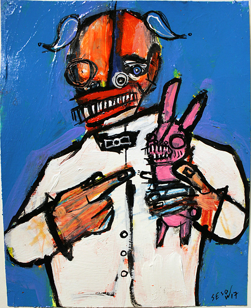 "Bunny Peddler" acrylic on archival paper 8" x 10" *SOLD email sesow@sesow.com to reserve/ask about purchasing. please include url and description. |