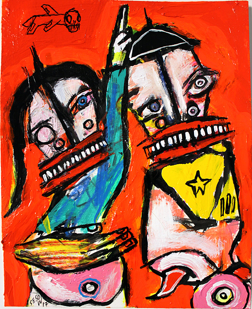 "Border Crossing" acrylic/oil on unstretched canvas approx. 34" x 37" (approx. 3" extra black black border) *SOLD email sesow@sesow.com to reserve/ask about purchasing. please include url and description. |