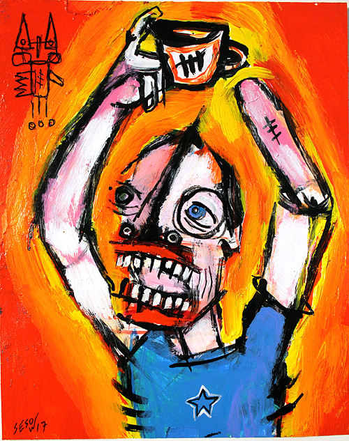 "Raising the Cup" acrylic on archival paper 8" x 10" *SOLD email sesow@sesow.com to reserve/ask about purchasing. please include url and description. |