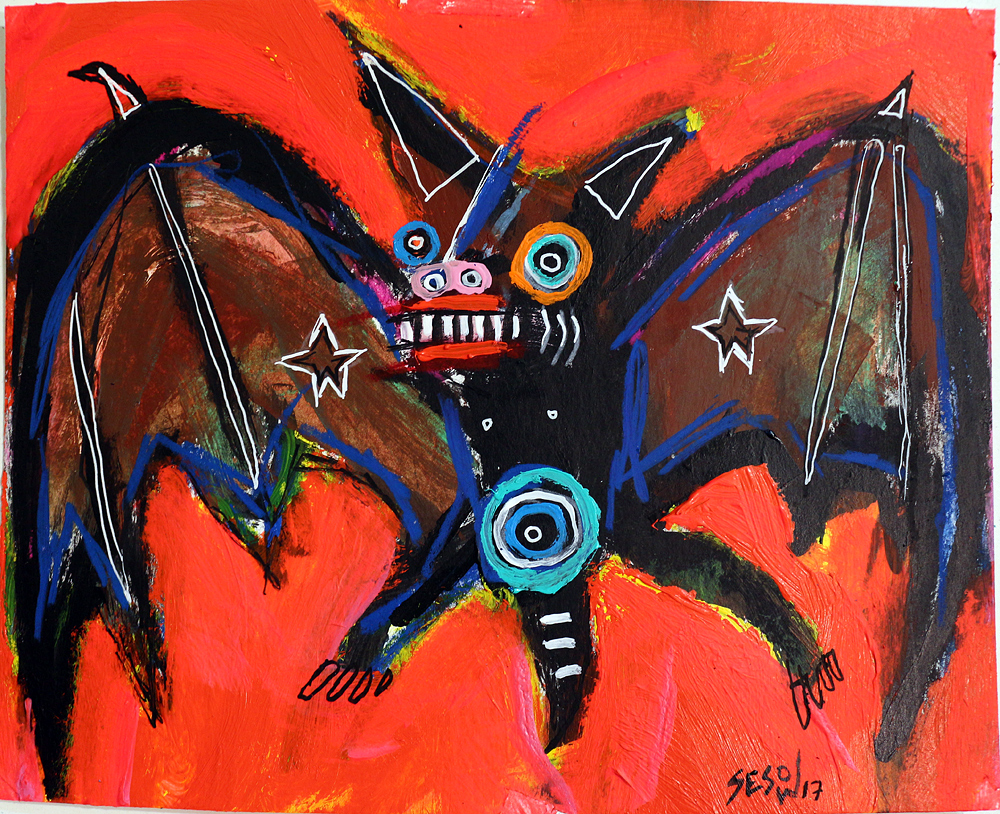 "Bat" acrylic on archival paper 8" x 10" *SOLD email sesow@sesow.com to reserve/ask about purchasing. please include url and description. |