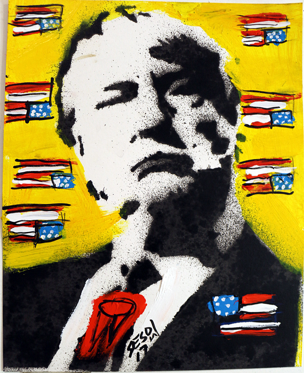"Inauguration" acrylic/oil on unstretched canvas approx. 32" x 42" (approx. 3" extra black black border) *SOLD email sesow@sesow.com to reserve/ask about purchasing. please include url and description. |