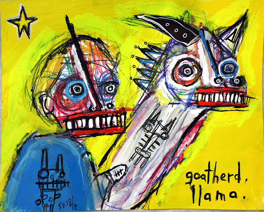 "Goatheard Llama" acrylic on archival paper 8" x 10" *SOLD email sesow@sesow.com to reserve/ask about purchasing. please include url and description. |