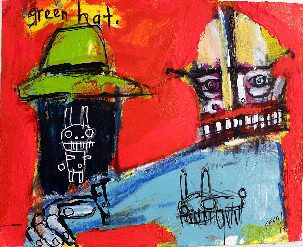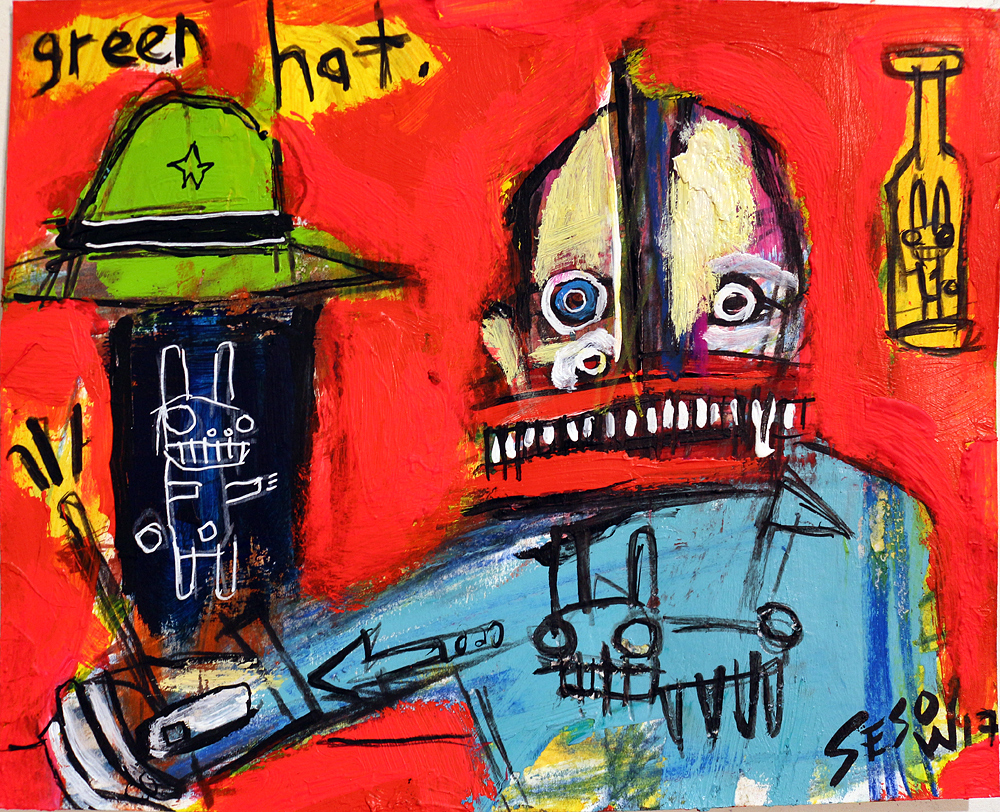 "The Green Hat" acrylic on archival paper 8" x 10" *SOLD email sesow@sesow.com to reserve/ask about purchasing. please include url and description. |