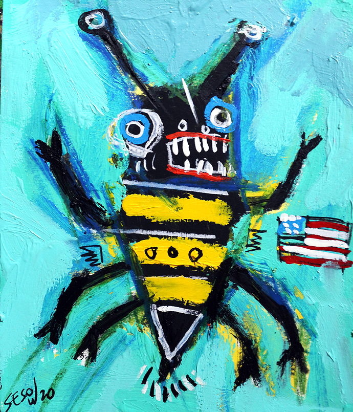 "American Bee" acrylic/mix on paper 8" x 10" *SOLD email sesow@sesow.com to reserve/ask about purchasing. please include url and description. |