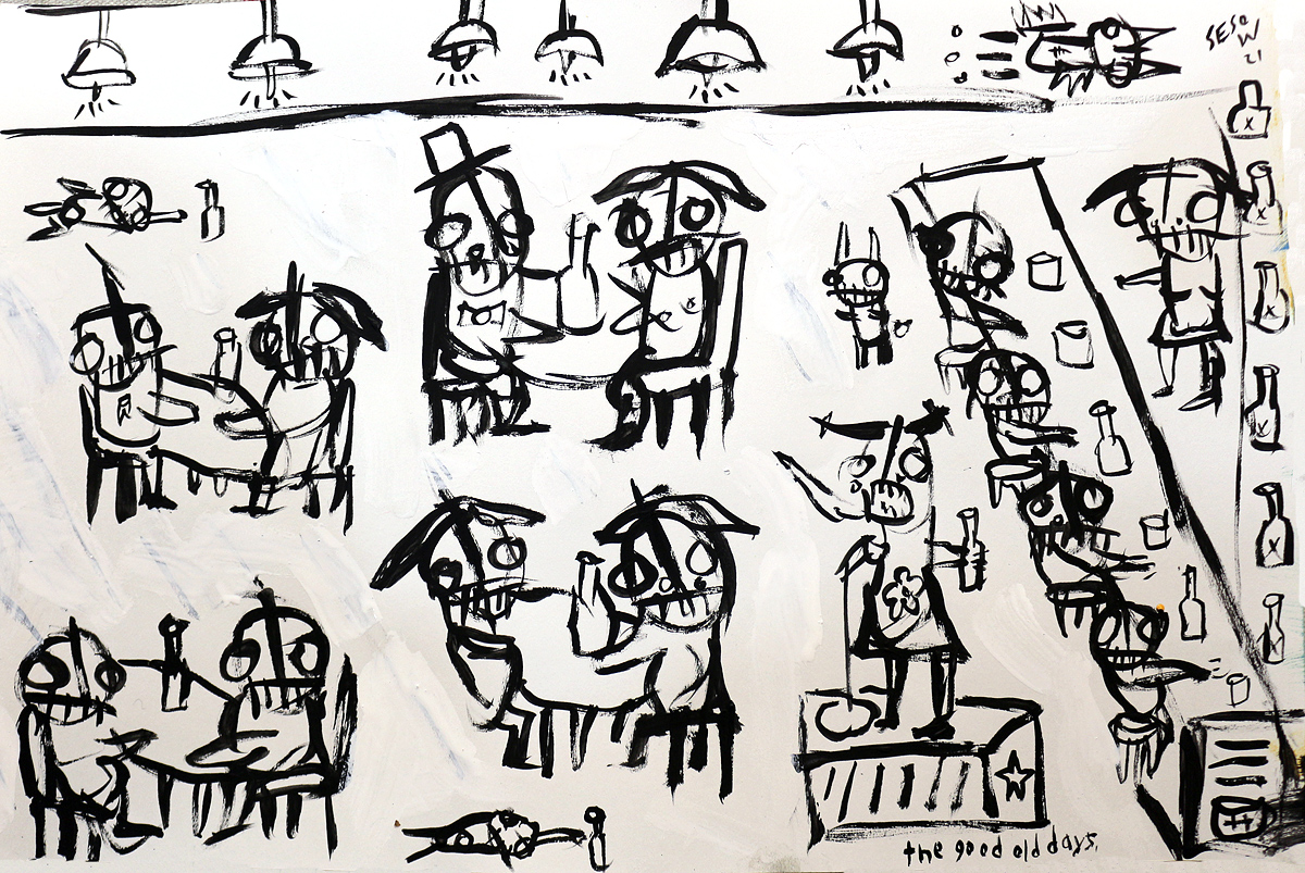 "The Good Old Days" acrylic/ink on paper 12" x 18" *SOLD email sesow@sesow.com to reserve/ask about purchasing. please include url and description. |