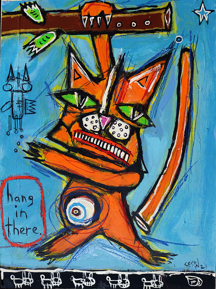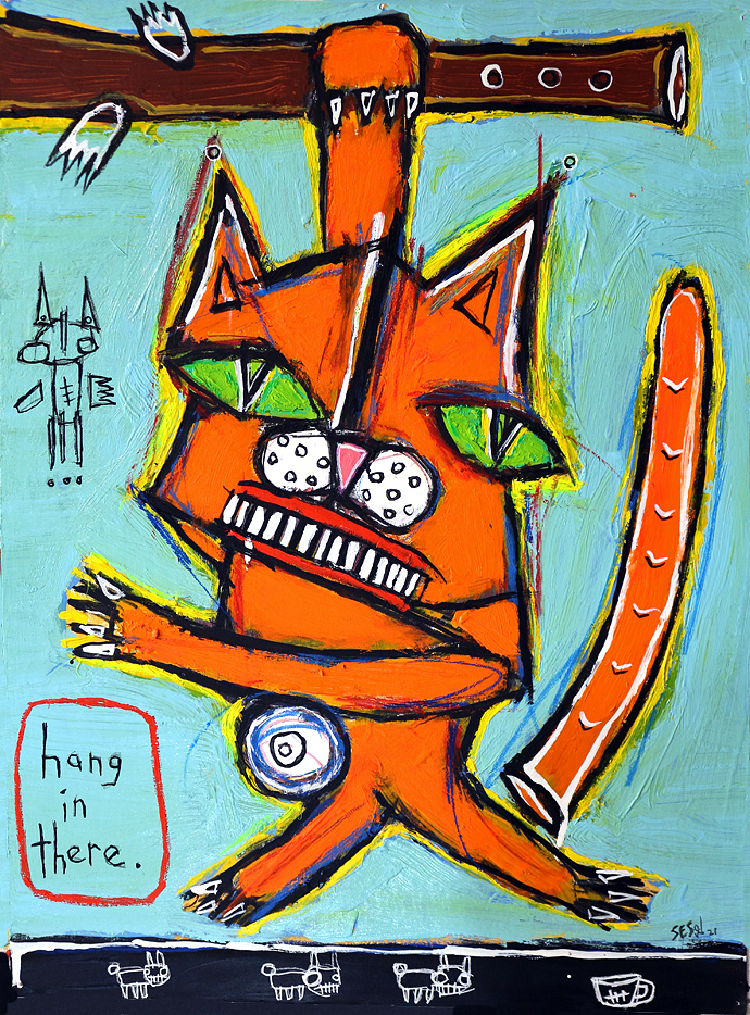 "Hang in there" oil/acrylic on watercolor board 15" x 20" *SOLD email sesow@sesow.com to reserve/ask about purchasing. please include url and description. |