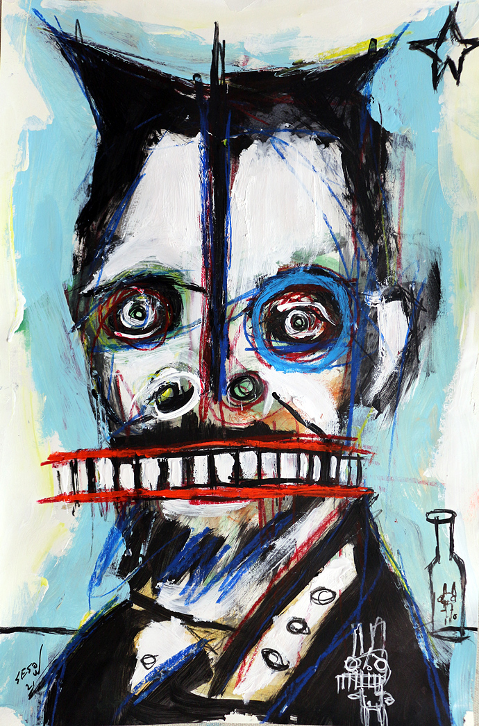 "Poe with Bunny" A 'defiled' collaboration painting with Dana Ellyn acrylic/mix on paper 12" x 18" *SOLD email sesow@sesow.com to reserve/ask about purchasing. please include url and description. |