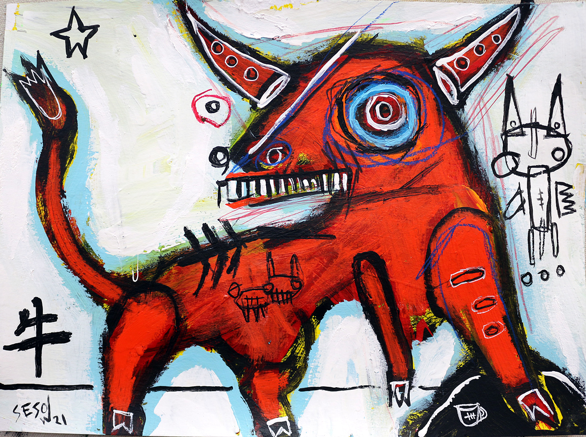 "The Year of the Ox" acrylic/mix 11" x 15" good watercolor paper *SOLD email sesow@sesow.com to reserve/ask about purchasing. please include url and description. |