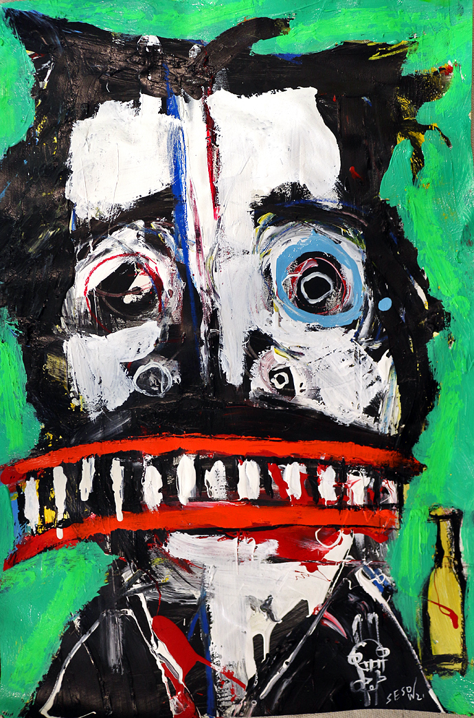 "Handsome Chicken" A 'defiled' collaboration painting with Dana Ellyn acrylic/mix on paper 12" x 18" *SOLD email sesow@sesow.com to reserve/ask about purchasing. please include url and description. |