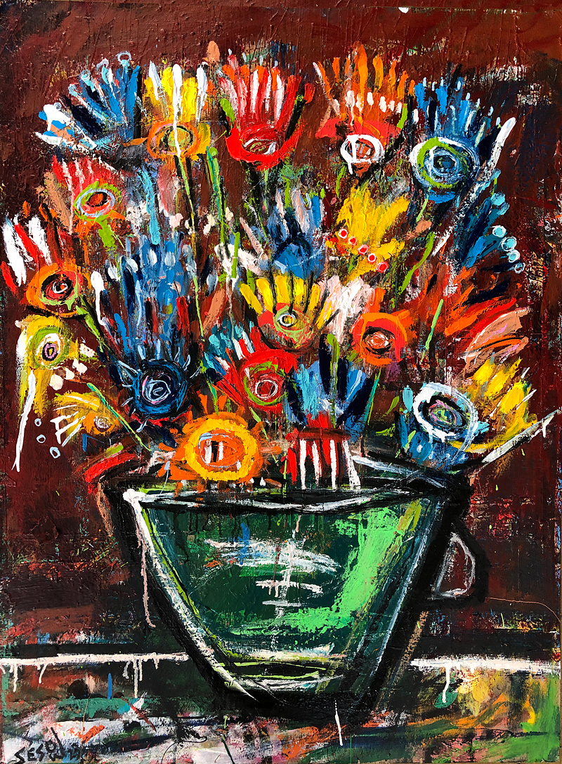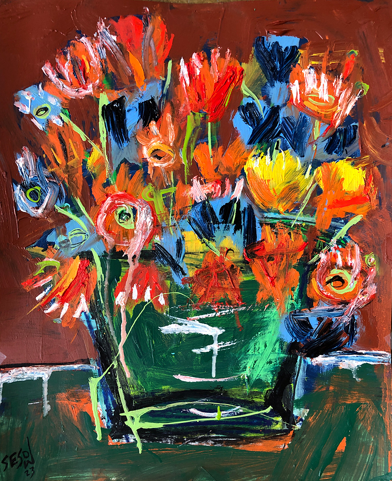 "Elegant Zinnias" oil/mix on chipboard 30" x 40" *SOLD email sesow@sesow.com to reserve/ask about purchasing. please include url and description. |
