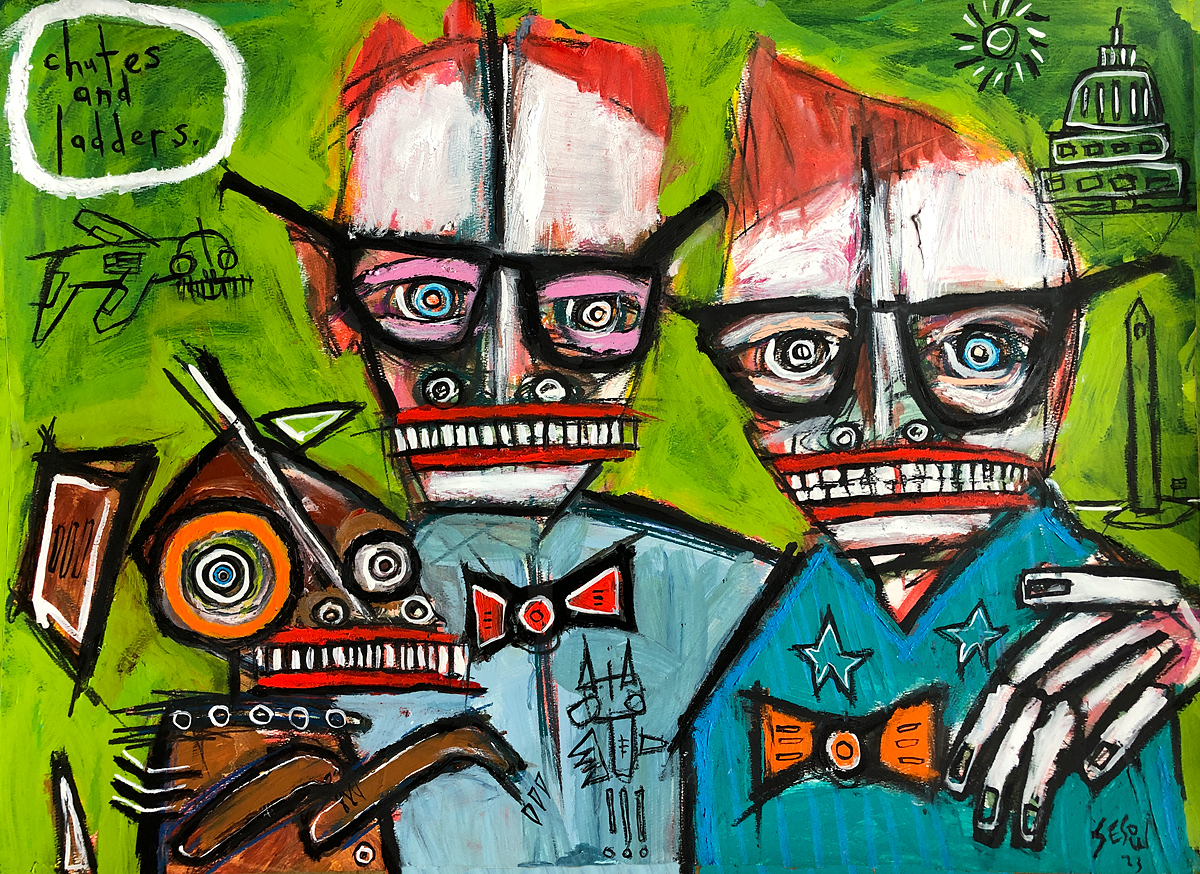 "Chutes and Ladders" oil/mix on thick watercolor paper 30" x 22" *SOLD email sesow@sesow.com to reserve/ask about purchasing. please include url and description. |