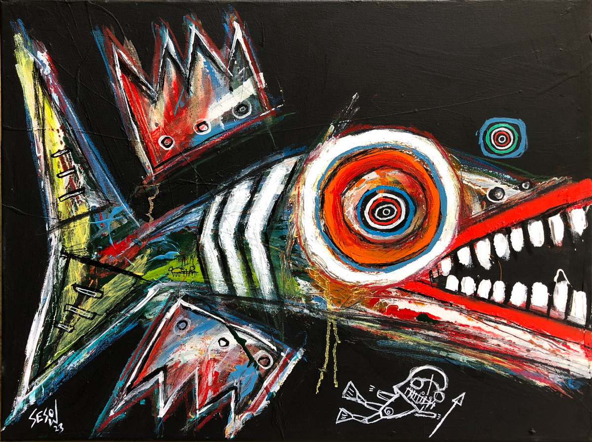 "Fresh Fish" acrylic/oil on stretched canvas 18" x 24" *SOLD email sesow@sesow.com to reserve/ask about purchasing. please include url and description. |