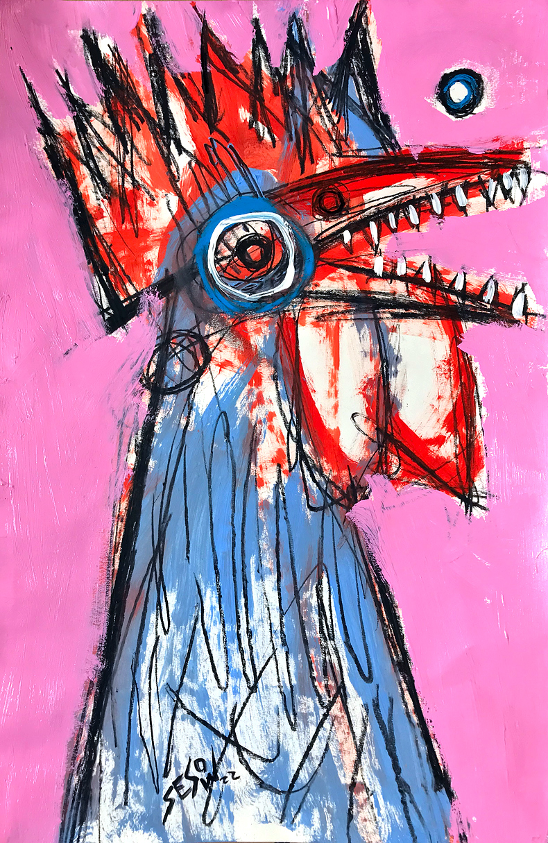 "Chicken" acrylic/mix on archival paper 12" x 18" *SOLD email sesow@sesow.com to reserve/ask about purchasing. please include url and description. |