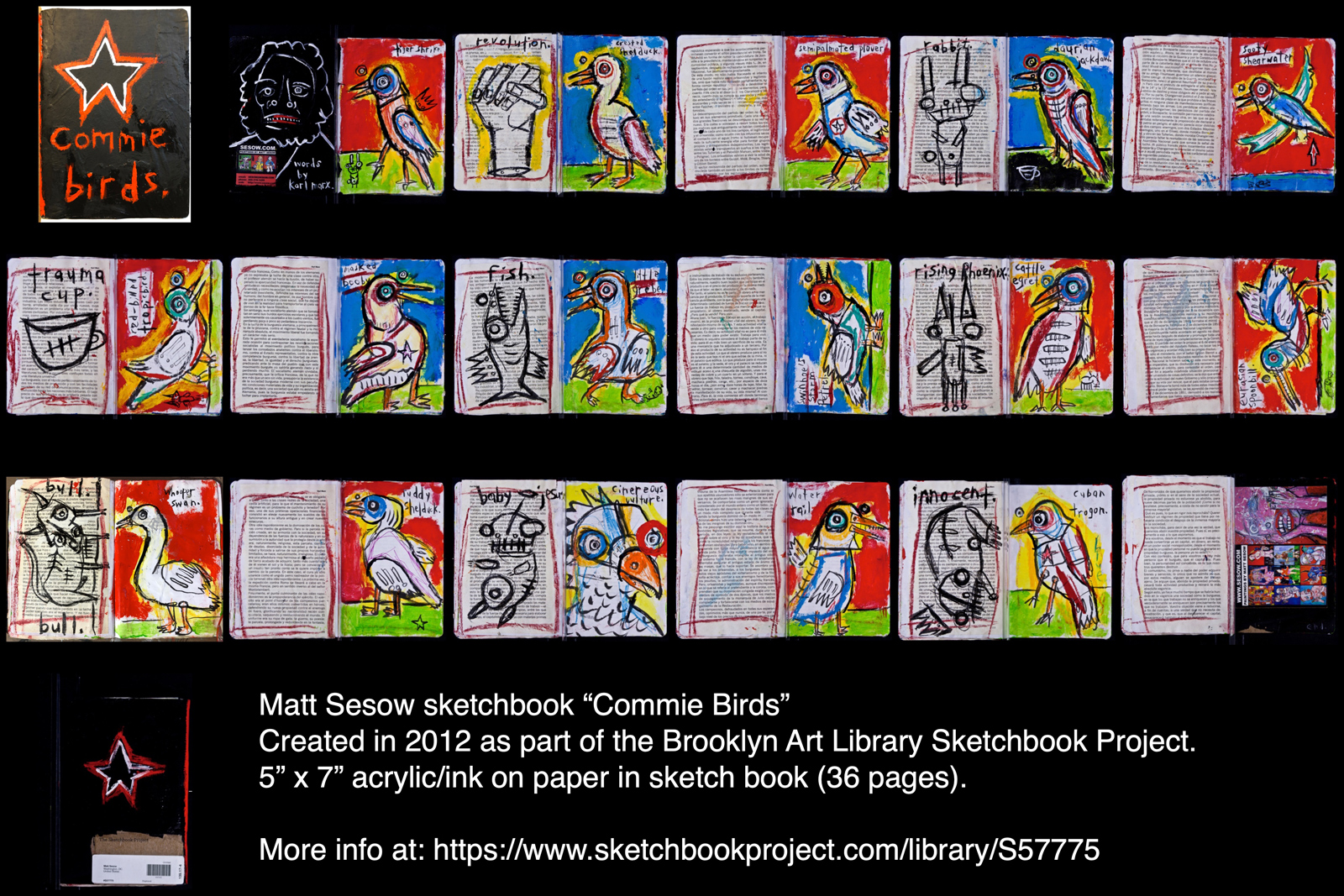 "Commie Birds" Created 2012 as part of Brooklyn Art Library Sketchbook Project acrylic/mix on paper in sketchbook (36 pages) 5" x 7" *SOLD View the Pages and More Info |